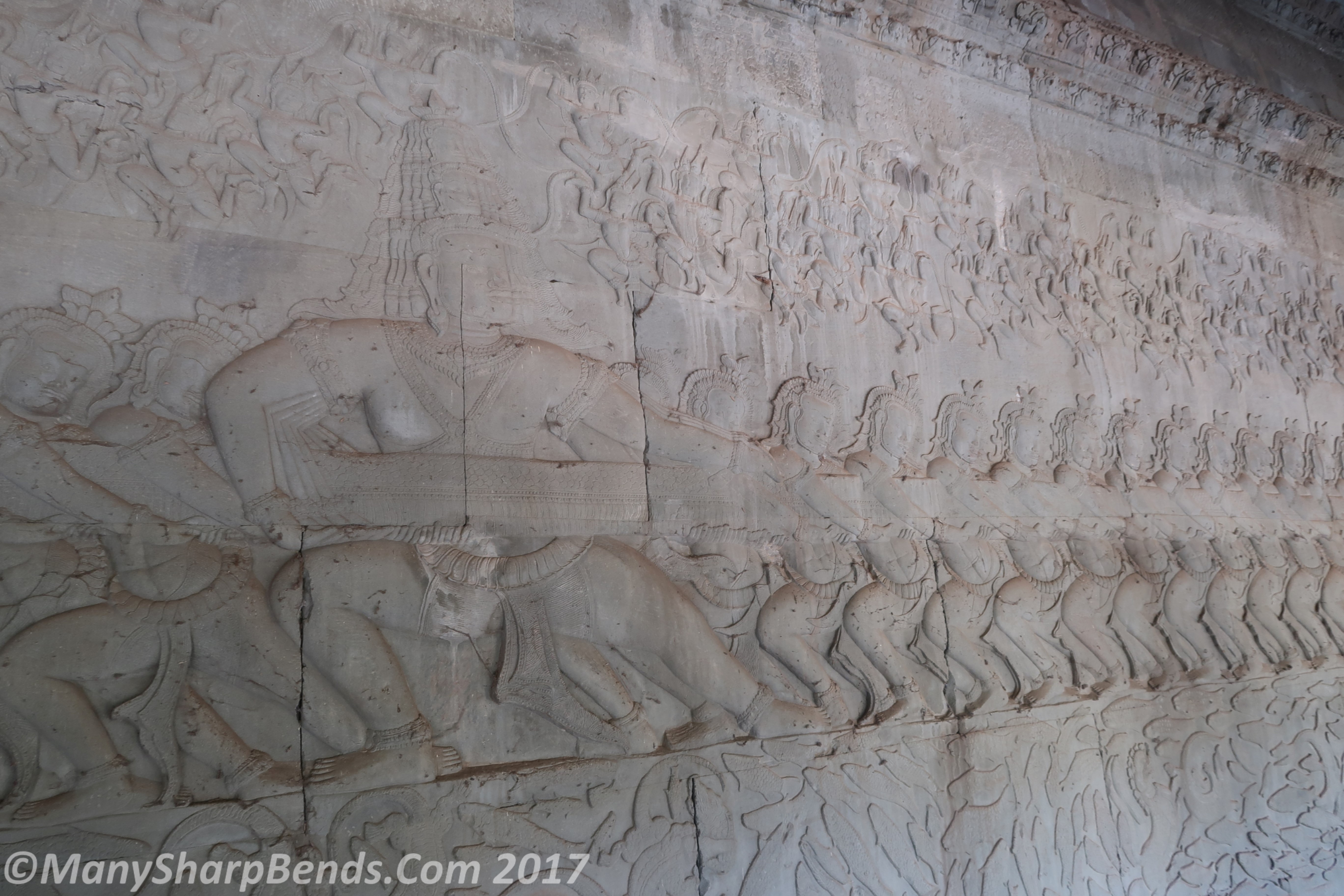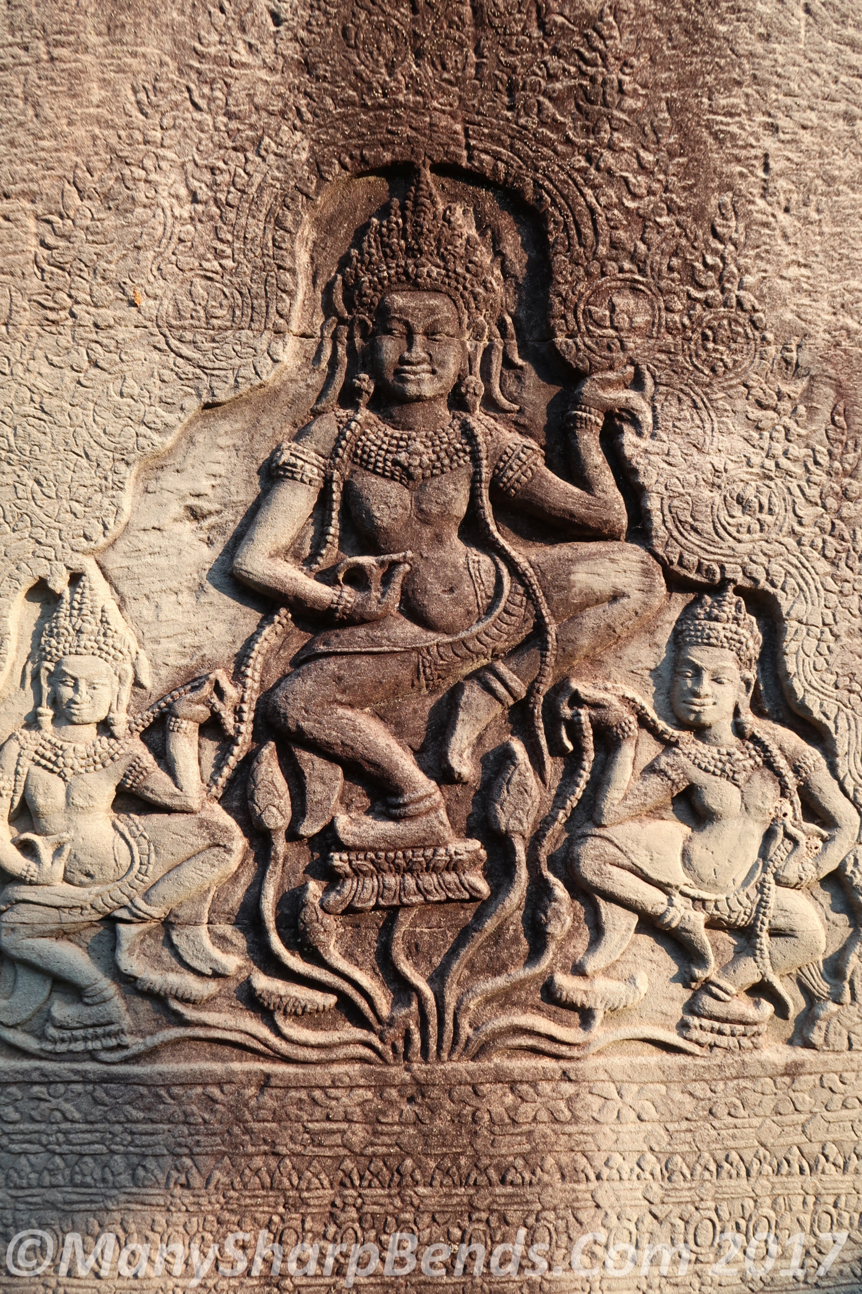 By now it was insanely hot and we took a lunch break followed by a power nap. We then headed back to the big daddy AW for the third time, this time to explore it properly from the inside. In retrospect, it turned out that we loved Bayon and Banteay Srei more than AW – I guess its a matter of taste. Sometimes overcrowding influences your likes and dislikes – the crowds at AW are obviously not for the faint-hearted. Built by Suryavarman II, AW is dedicated to lord Vishnu. Its an impressive and massive complex surrounded by a moat on all sides. The stone blocks to build it were quarried from 50 Kms away! The bas reliefs are most impressive and if you know your Ramayana and Mahabharata, you would love it !