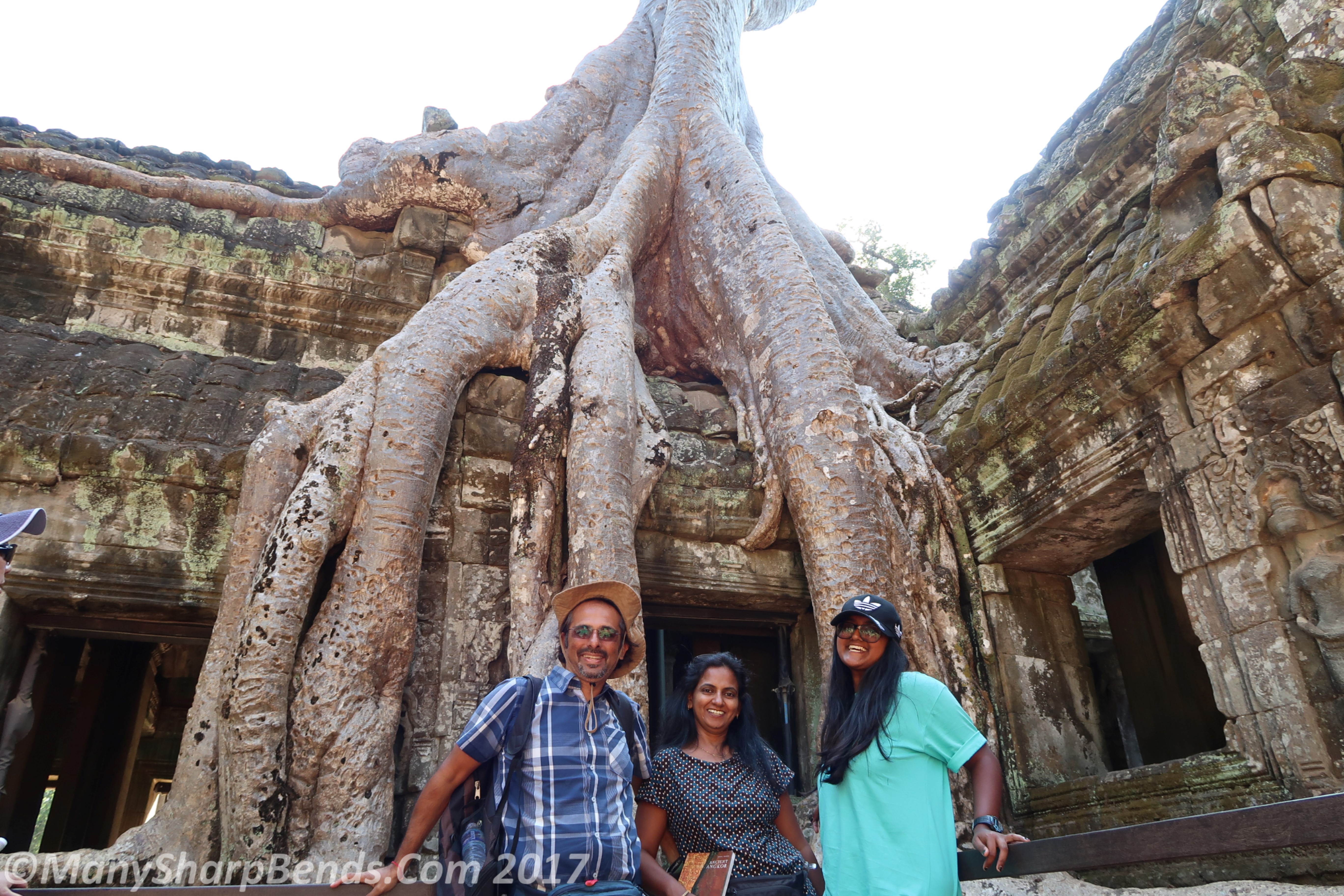 We kicked off our last day with the atmospheric Ta Prohm Buddhist temple set amidst a jungle with roots of ancient trees making their way through the temple structure in many places. It has been immortalized by the Angelia Jolie starrer Lara Croft: Tomb raider. Completely different from the more organized and structured Angkor Wat: Ta Prohm is wild, unstructured, uninhibited and we loved it. Of special proud mention is the ASI’s (Archaeological Socieny of India) involvement in the temple’s restoration.